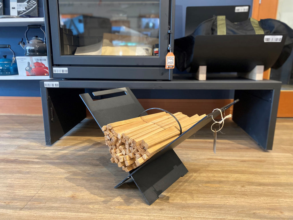 This compact and robust log holder is entirely manufactured in Canada and made of high