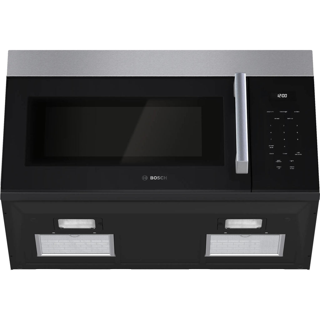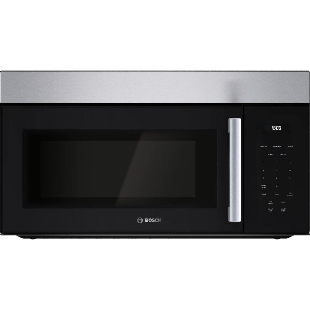This Bosch 100 Series 30" Over-the-Range Microwave offers a spacious 1.7 cu. ft. capacity to accommodate a wide range of dishes. Its 300 CFM ventilation system effectively eliminates steam, smoke, grease, and odors. The easy-to-read LCD display with white LED lettering adds convenience and clarity to everyday use.