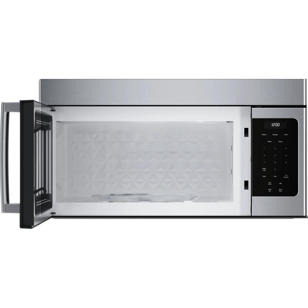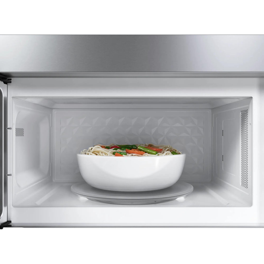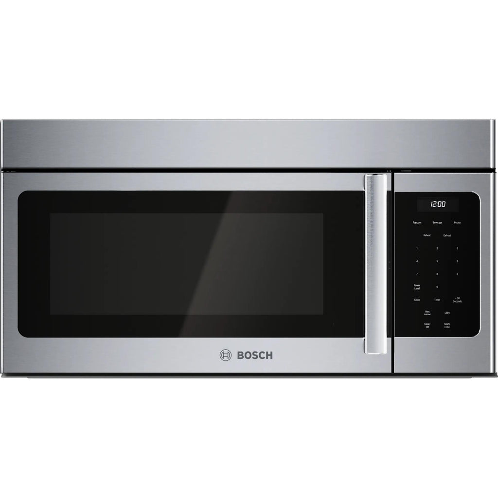 This Bosch 300 Series 30" over-the-range microwave with Left Side Opening Door. It features surface lighting to illuminate your range or ambient kitchen lighting, a large 1.7 cu. ft. capacity to fit a variety of dishes, 300 CFM vent efficiently that removes steam, smoke, grease and odors. This microwave offers a variety of modes including beverage reheat, potato and popcorn for easy and fast results.