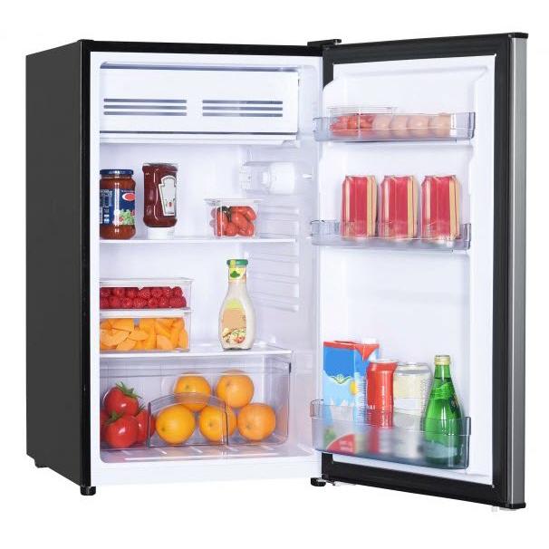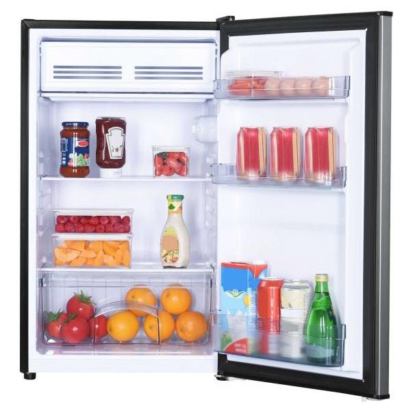This compact fridge offers a considerable 4.4 cubic feet (125 L) of refrigeration space with a built-in full-width chiller and crisper. There’s a reversible door hinge, which enables users to open the fridge left or right-handed via the integrated door handle, for any room set-up. The one-and-a-half adjustable shelves and tall bottle storage allow you to best maximize your fridge space.