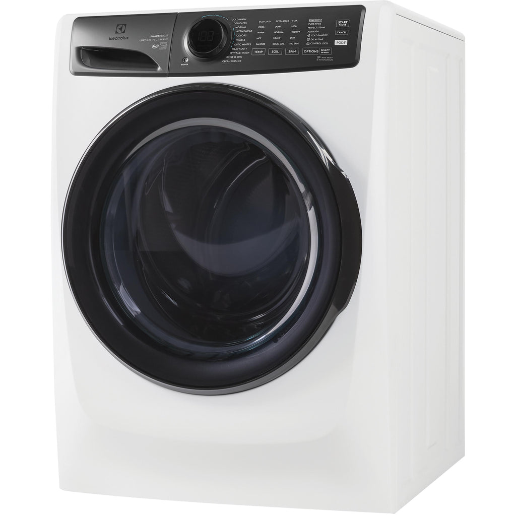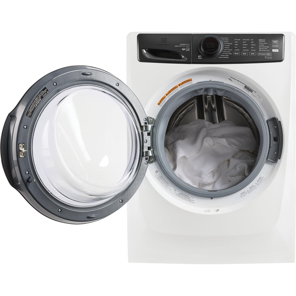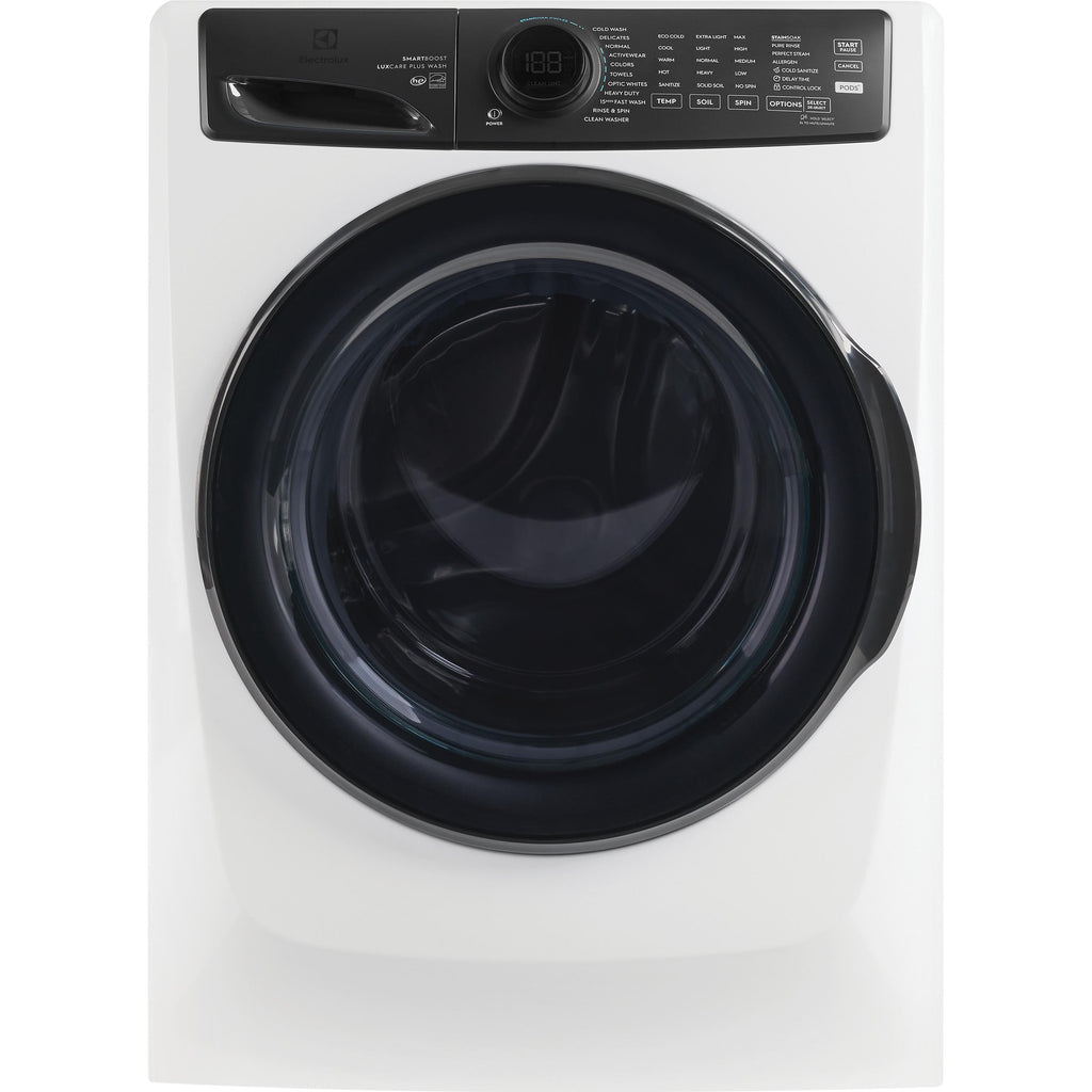 The Electrolux front load washer provides the most effective stain removal with SmartBoost premixing technology, even in cold water. With new features like Cold Sanitize and a Care Meter to help make sustainable selections easier, this machine is optimized to perform in cold water. It features the industry's first Adaptive Dispenser that accepts detergent packs to give you the flexibility to clean with all detergent types. Features like Optic Whites and Perfect Steam provide better care for fabrics, giving your favorite clothes a longer life.