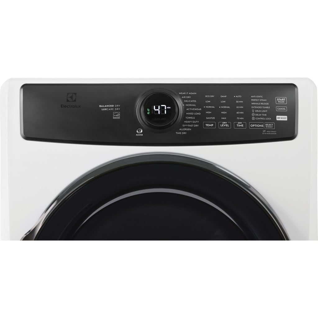 The Electrolux front load gas dryer with Balanced Dry technology prevents temperature spikes to keep fabrics cooler throughout the dry cycle. LuxCare Dry uses an advanced moisture sensor to prevent over or under-drying. The Electrolux Perfect Steam electric dryer with Predictive Dry has a more precise sensor to protect fabrics from overdrying. The Wear It Again cycle refreshes fabrics by using steam and tumble to remove pet hair, reduce odors, and reduce wrinkles in just 15 minutes.