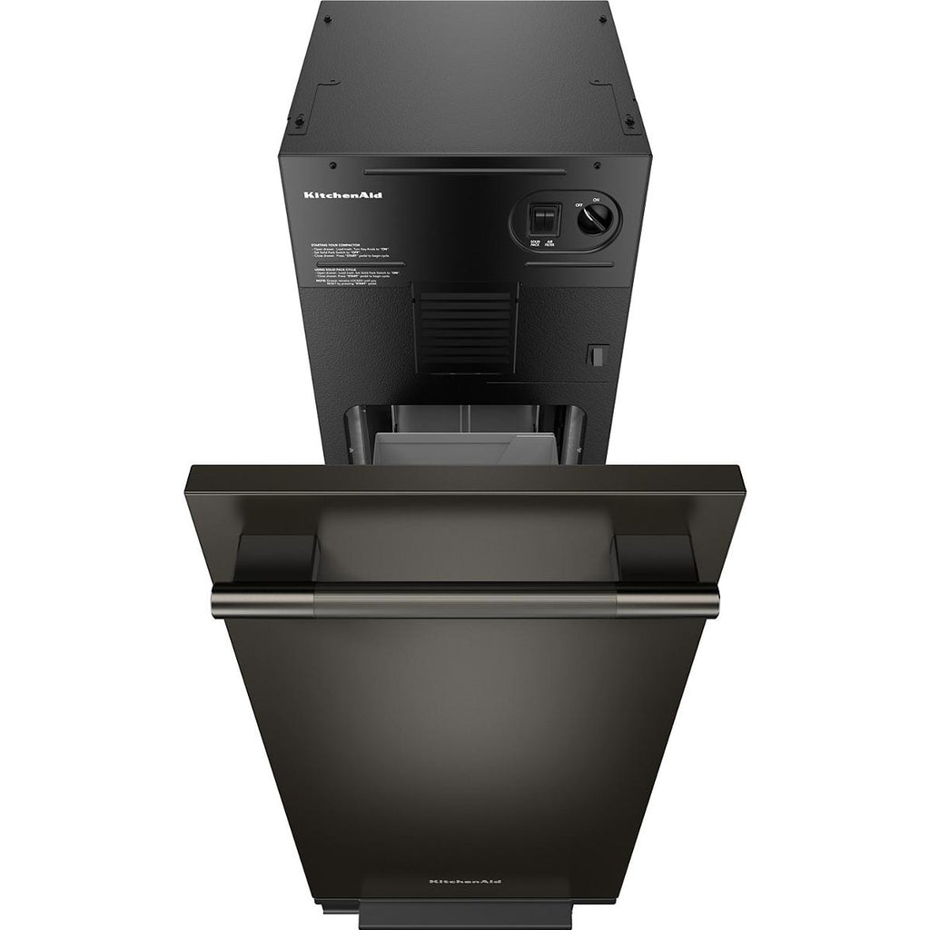 Simplify your trash collecting and recycling efforts with this built-in trash compactor. Solid Pack™ Control reduces trash volume by up to 80%, allowing you to fit five trash compactor bags worth of waste into one. Its Built-In Odor Management System helps keep unwelcome aromas out, while the design includes a fully-integrated front panel that blends your KitchenAid® appliances into one clean look.
