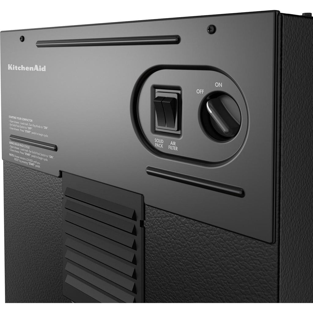 Simplify your trash collecting and recycling efforts with this built-in trash compactor. Solid Pack™ Control reduces trash volume by up to 80%, allowing you to fit five trash compactor bags worth of waste into one. Its Built-In Odor Management System helps keep unwelcome aromas out, while the design includes a fully-integrated front panel that blends your KitchenAid® appliances into one clean look.