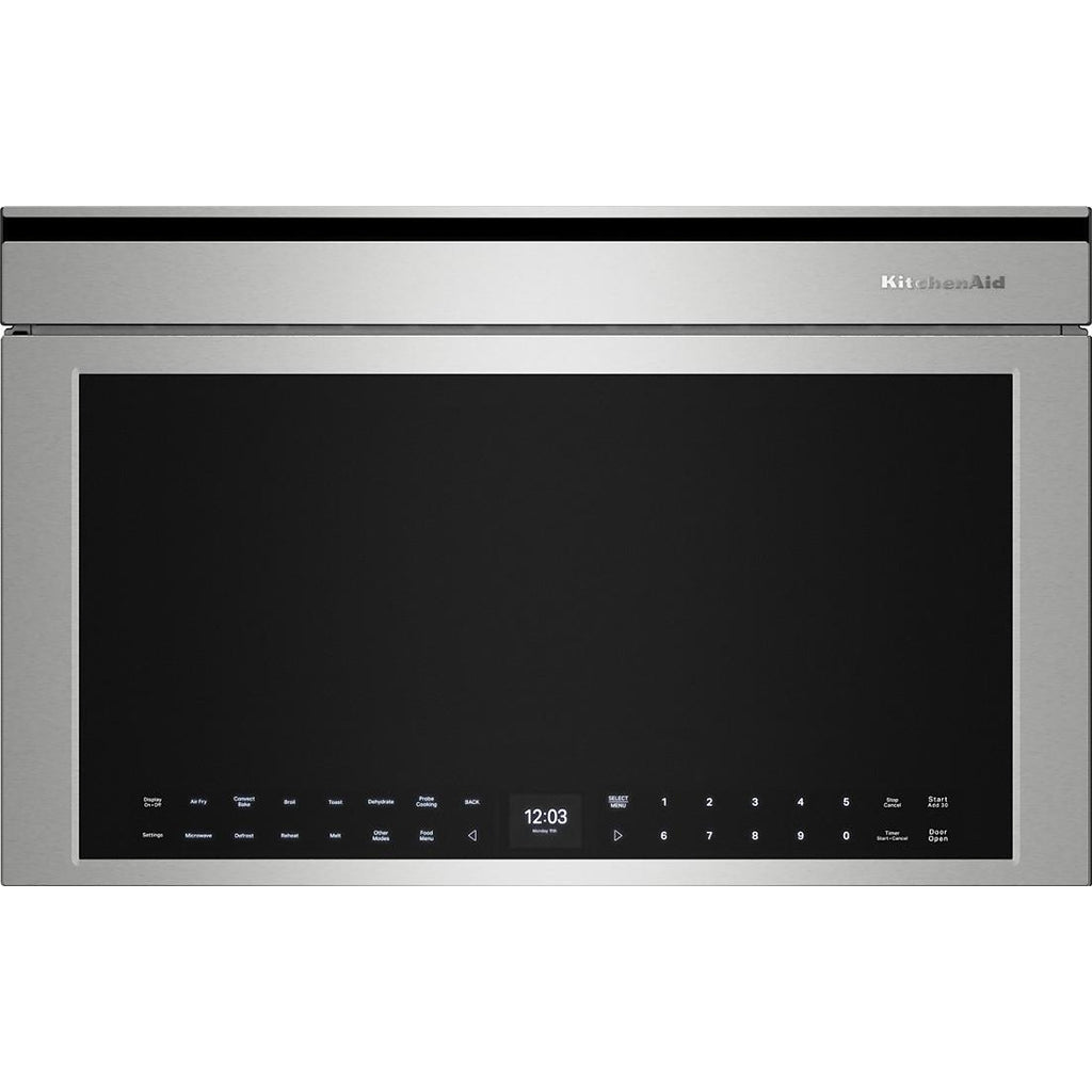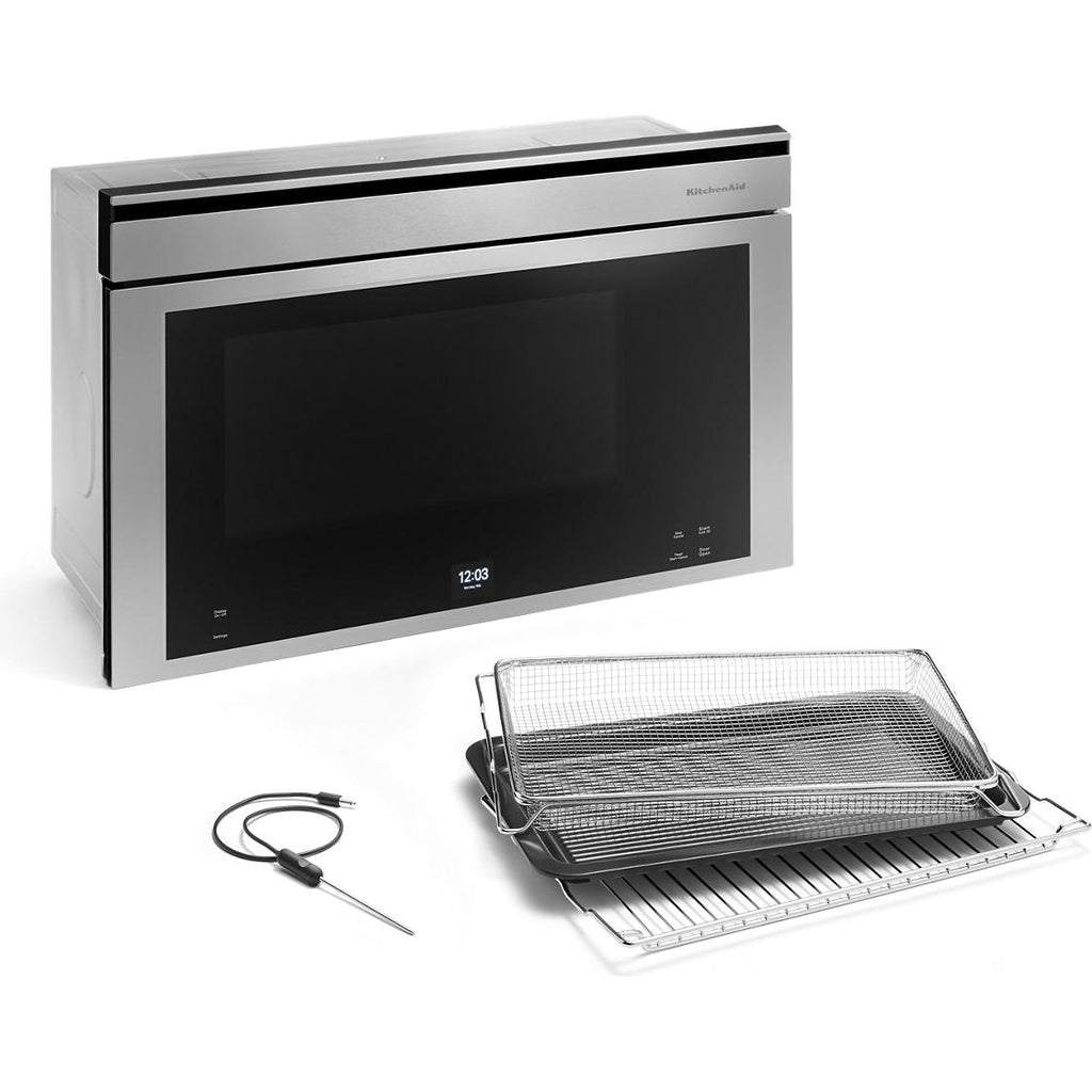 This KitchenAid® Built-In More-in-One Convection Microwave Oven takes a versatile spin on the microwave with Multifunction Oven Modes including Air Fry Mode and so much more. Its Temperature Probe and Smart Appliance features elevates the cooking experience, while its Built-In and Turntable-Free Design effortlessly saves countertop space.