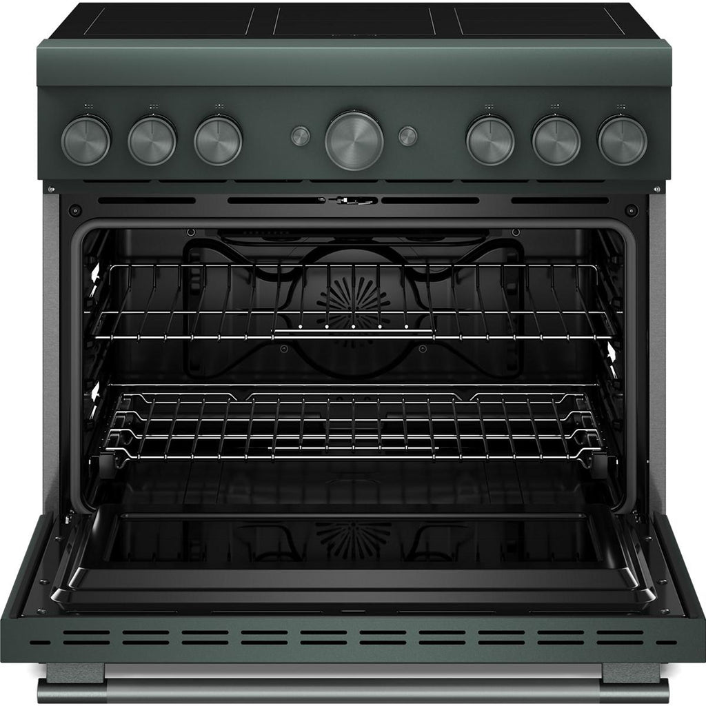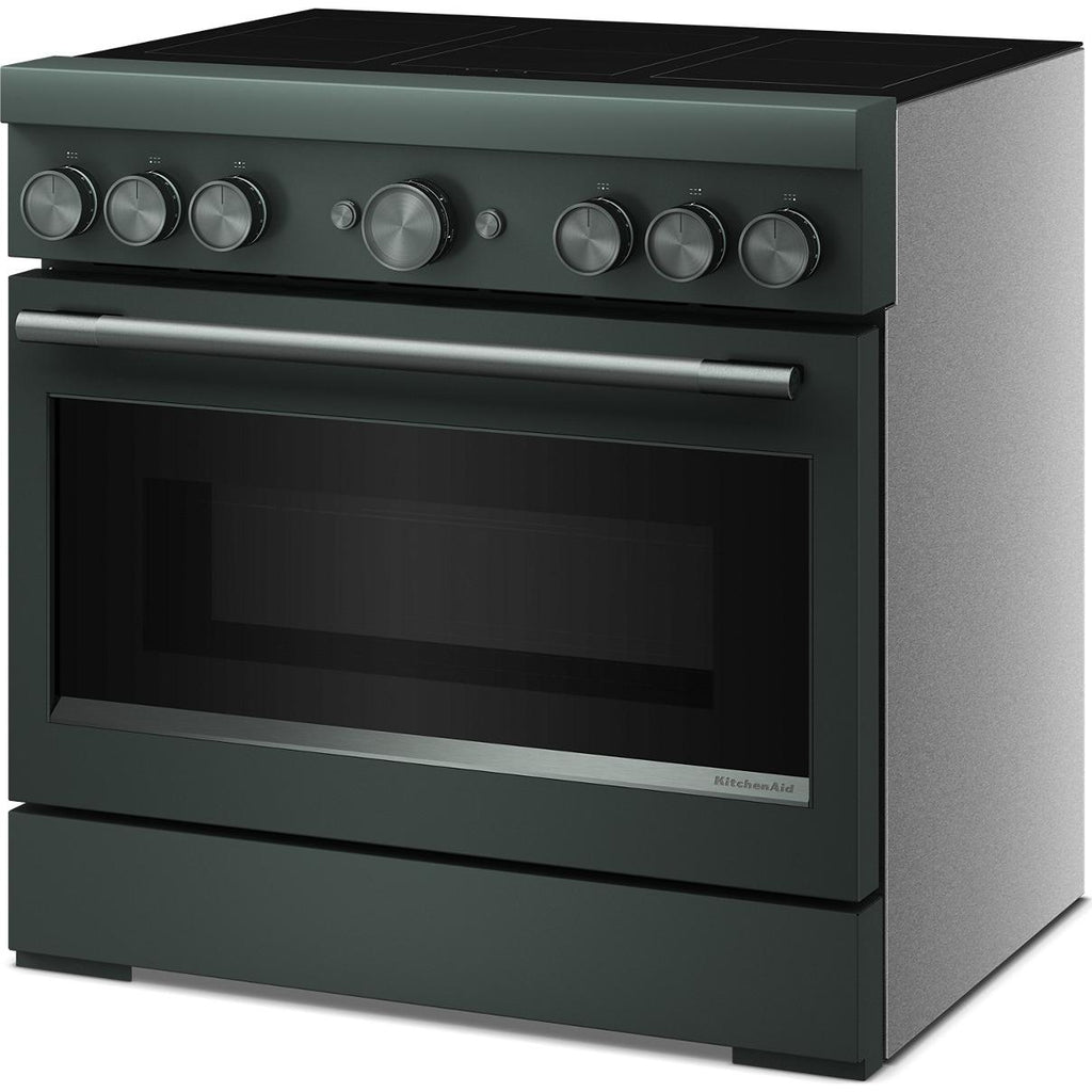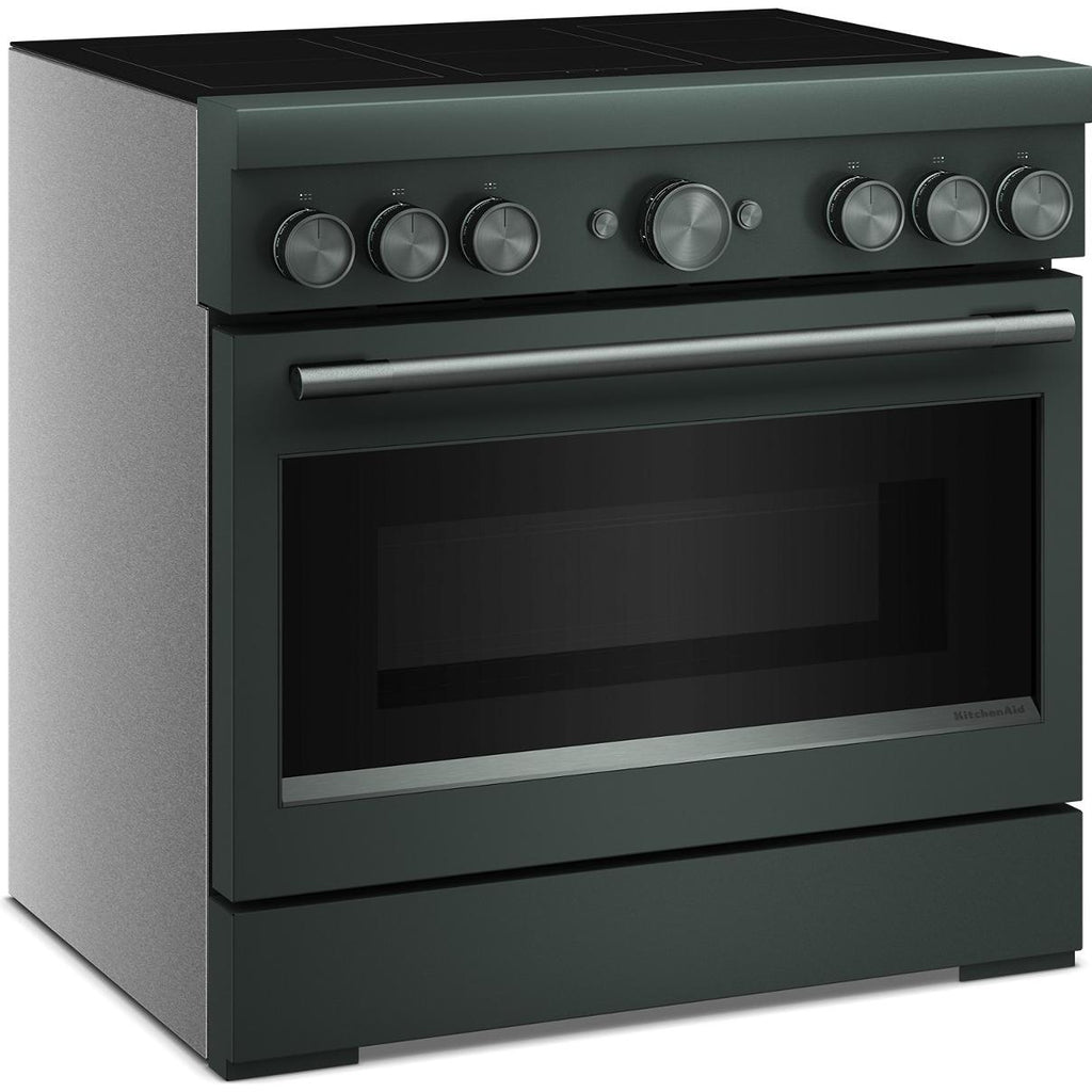 This KitchenAid® 5.1 cu. ft. 36-inch 6-Element Induction Freestanding Commercial-Style Range combines the precision of induction with the power of Air Fry. Sensor-induction cooktop generates heat directly within cookware, and the oven features Even-Heat™ True Convection plus air fry mode that aids in crisping and browning.