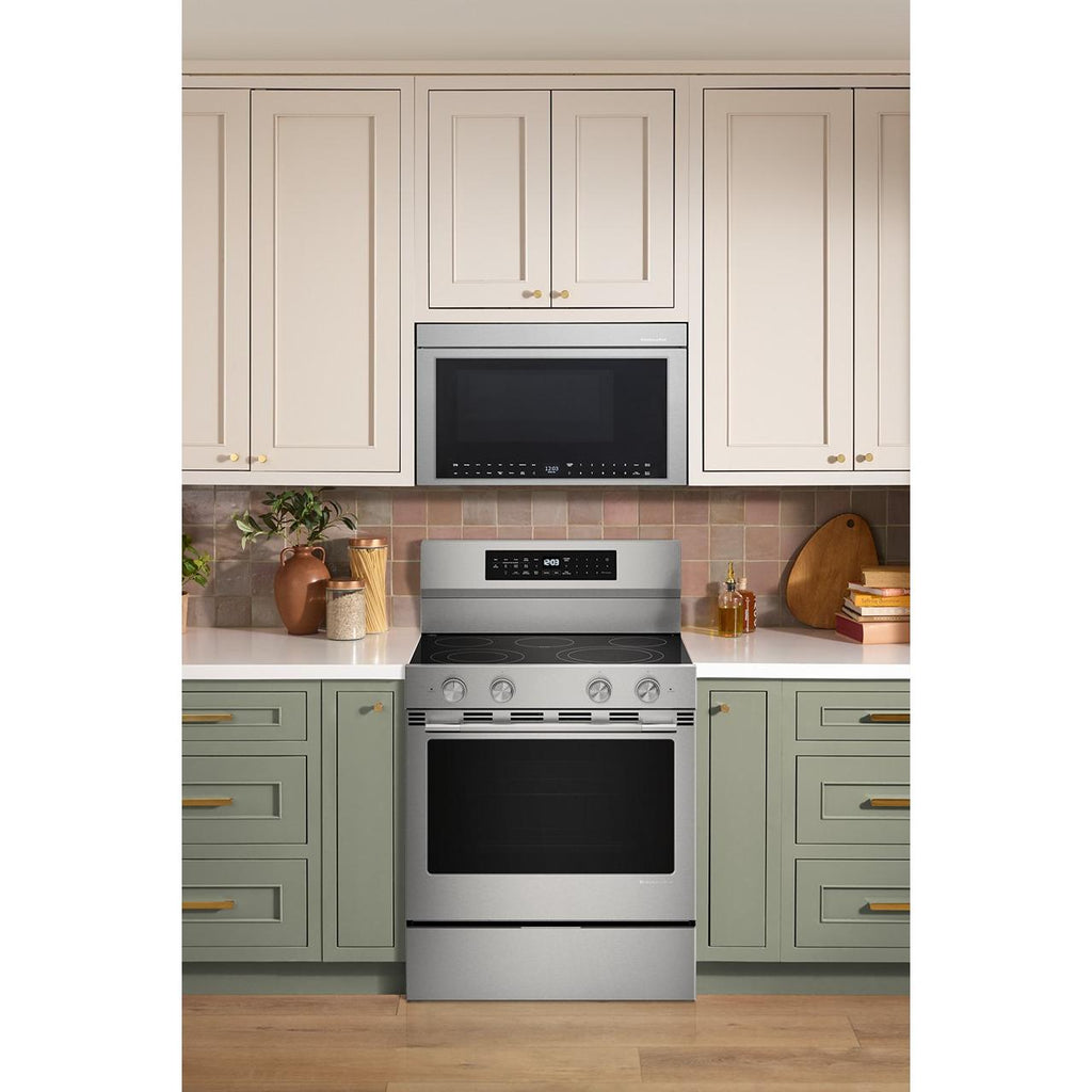 Enjoy a range of possibilities with our most powerful KitchenAid 30-inch Electric Range available. A WiFi-enabled Smart Appliance featuring Convection Cooking Modes that help you get consistent results with optimal temperatures. Move pots and pans easily from cooktop to countertop with an Edge-to-Edge Glass Cooking Surface. A spacious 5.3 Cu. Ft. Capacity and optimized oven system design with Rapid Preheat gets your oven to 350°F in under 8 minutes*.