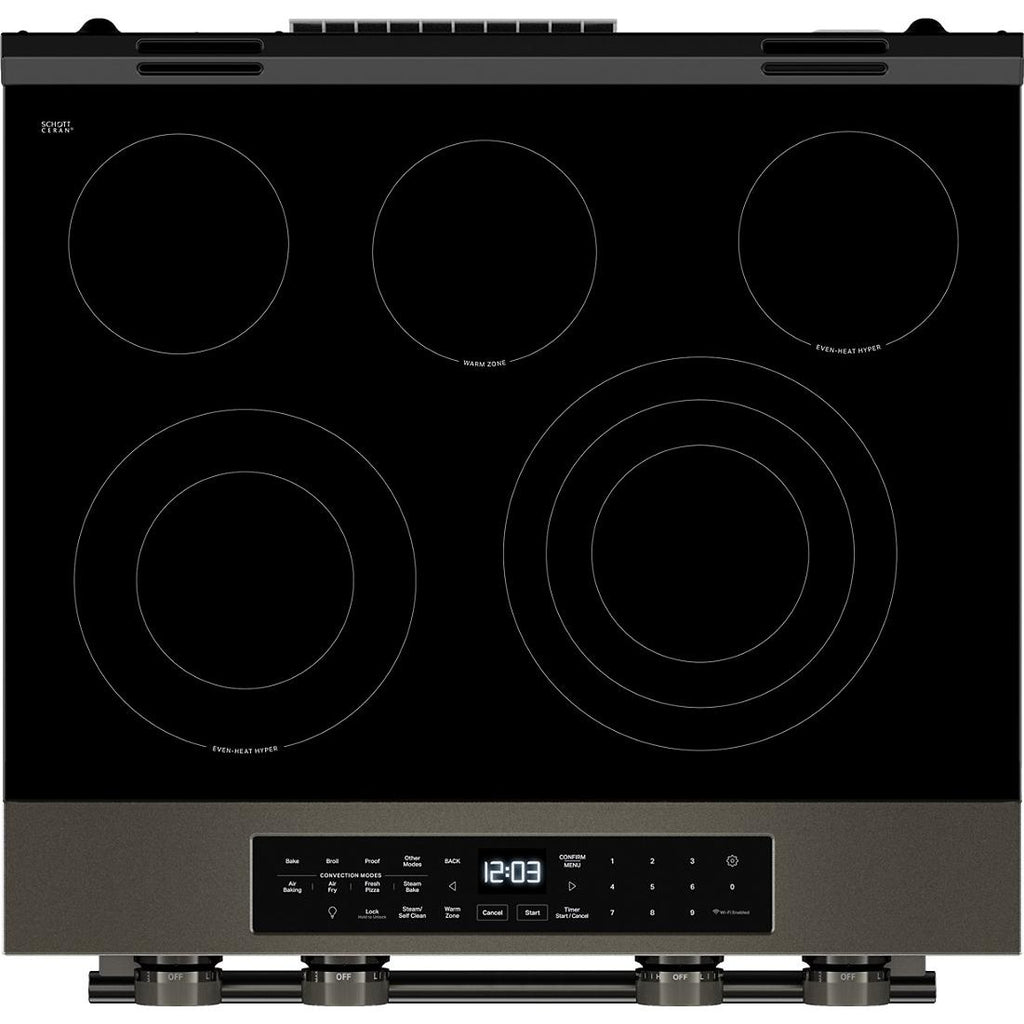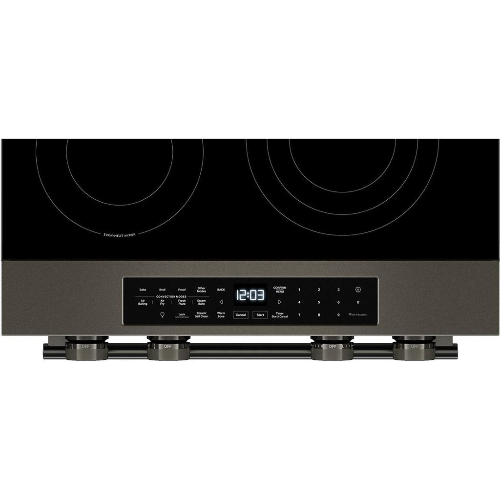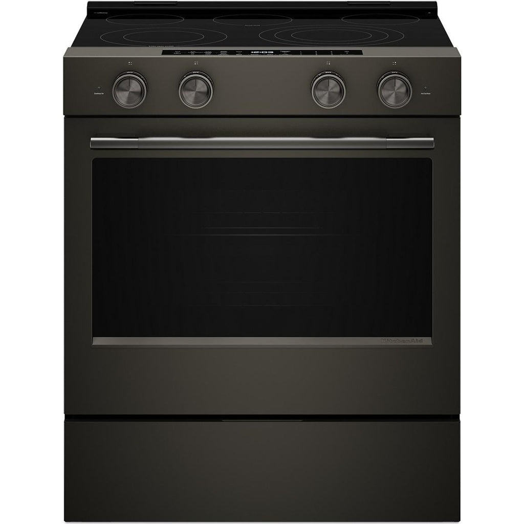 5.3 Cu. Ft. Smart Slide-in Electric Range with Two Even-Heat™ Hyper Elements and Convection Cooking Modes. Enjoy a range of possibilities with our most powerful KitchenAid 30-inch Electric Range available. Two Even-Heat™ Hyper Elements offer precise control and the versatility to take on large pots or small pans for various cooking tasks. A WiFi-enabled Smart Appliance featuring Convection Cooking Modes that help you get consistent results with optimal temperatures. A Steam Bake mode works with the included steam rack to provide additional moisture during baking, so you can enjoy Basque cheesecake and other delicious desserts. The range is designed to be personalized with a curated palette of exterior finishes and mixed metal hardware.