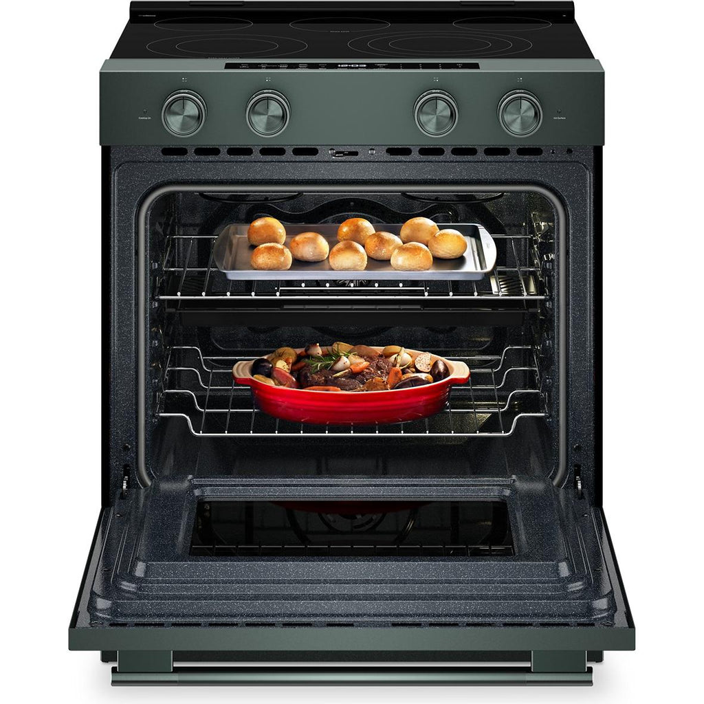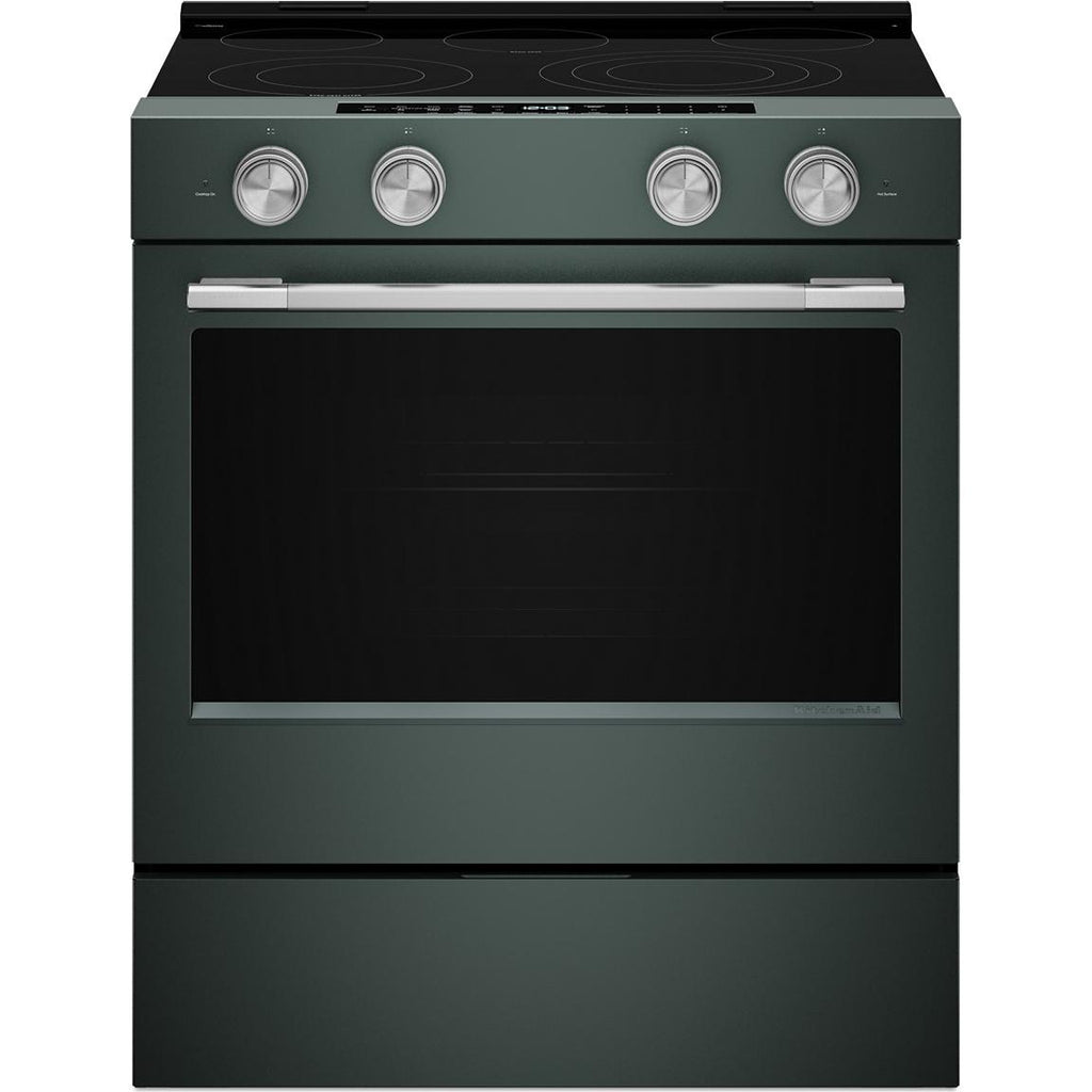 5.3 Cu. Ft. Smart Slide-in Electric Range with Two Even-Heat™ Hyper Elements and Convection Cooking Modes. Enjoy a range of possibilities with our most powerful KitchenAid 30-inch Electric Range available. Two Even-Heat™ Hyper Elements offer precise control and the versatility to take on large pots or small pans for various cooking tasks. A WiFi-enabled Smart Appliance featuring Convection Cooking Modes that help you get consistent results with optimal temperatures. A Steam Bake mode works with the included steam rack to provide additional moisture during baking, so you can enjoy Basque cheesecake and other delicious desserts. The range is designed to be personalized with a curated palette of exterior finishes and mixed metal hardware.