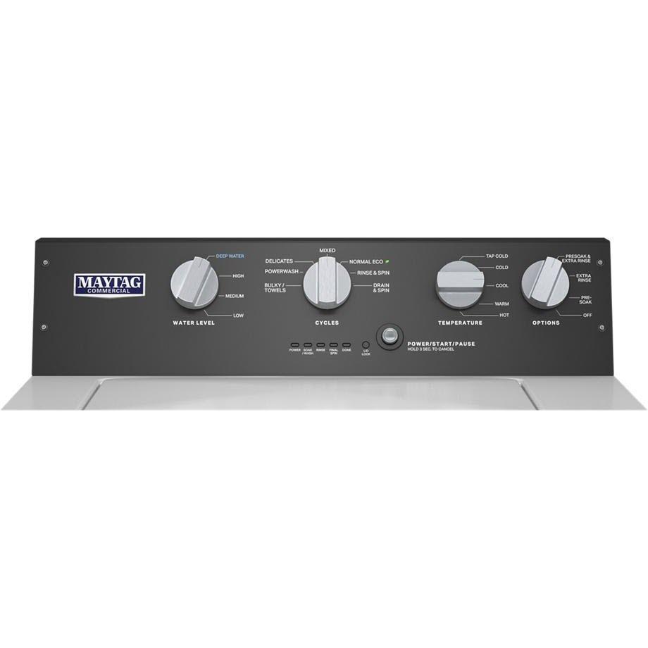 This commercial-grade Maytag® washer brings rugged durability and high-grade performance to the home laundry room. Delivered straight from the commercial Maytag® washer assembly line, this washer features a robust build, including a 1/2 horsepower motor and dual-action agitator, surrounded by thick, galvanized steel paneling engineered to take a beating and resist corrosion.