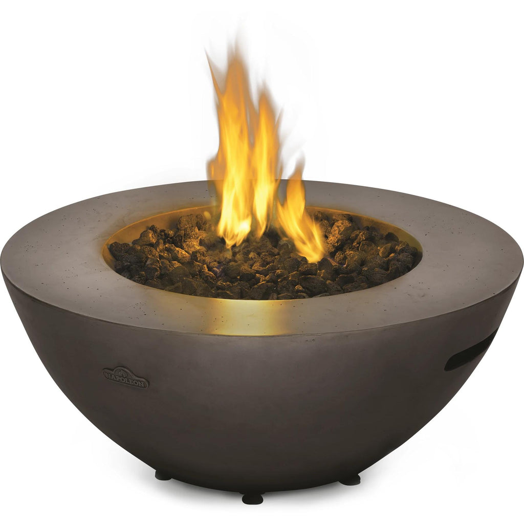 Napoleon Nexus 36 half sphere firebowl. Round table is cast aluminum construction that looks like formed concrete. Premium stainless steel burner with lava rock media. Option to natural gas through a conversion kit. NG Conversion Kit available - sold separately. Cover included.