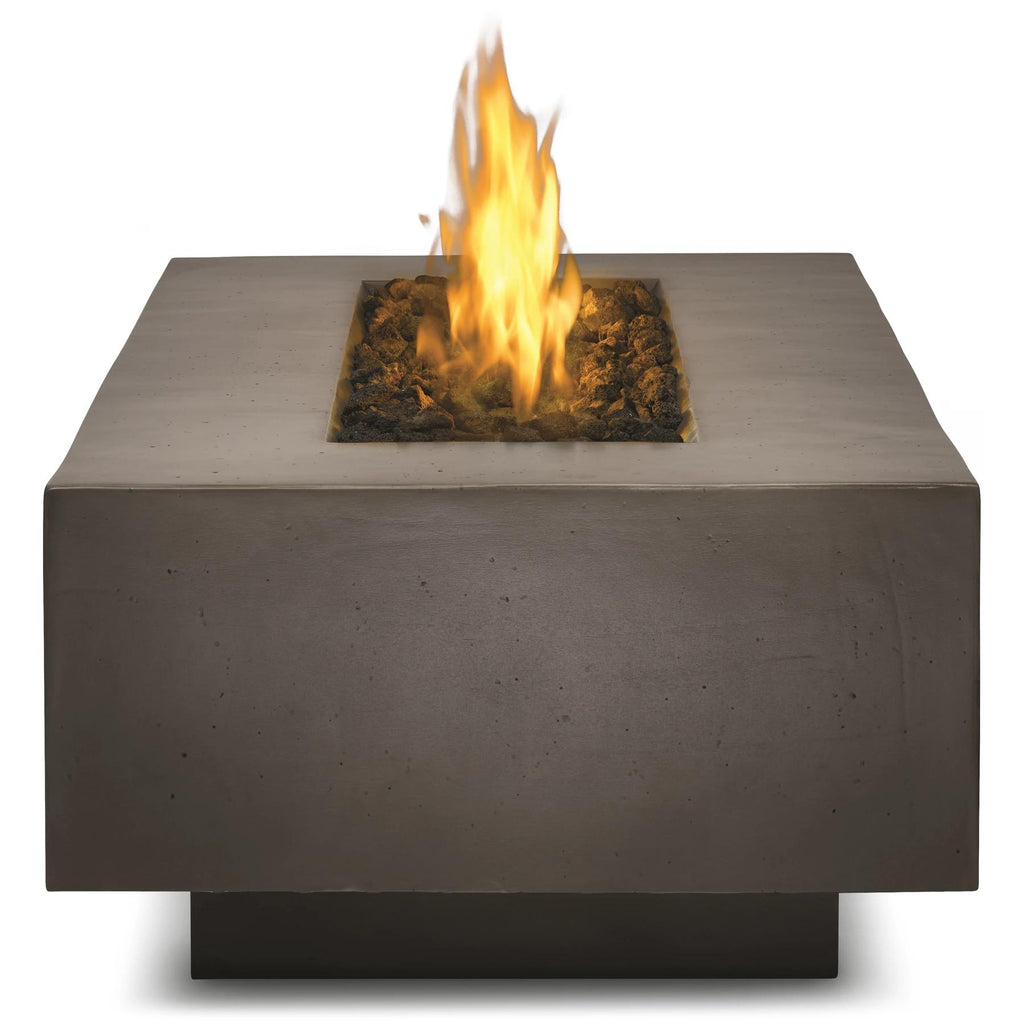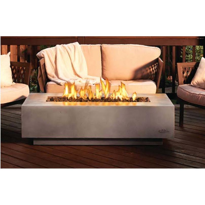Napoleon Nexus 56-inch rectangle table. Table is cast aluminum construction that looks like formed concrete. Premium stainless steel burner with lava rock media. Option to natural gas through a conversion kit. NG Conversion Kit available - sold separately. Cover included.
