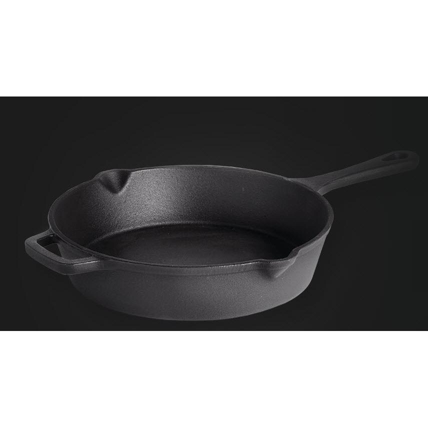 When it comes to cooking on the barbecue, some pans are too thin, some dishes are too frail, but this 9.5-inch (24 cm) Cast Iron Frying Pan is just right. Distributing and retaining heat evenly, this frying pan can help you get the best sear ever. From veggies and side dishes to dessert you can use the Cast Iron Frying Pan anywhere, on or in the oven, the barbecue, and side burners, over or directly in charcoal, and even your firepit. The enameled surface provides a naturally non-stick finish that only gets better with use. Easily pour juices and sauces from the integrated spouts. Whether you're cooking breakfast or creating the best dinners a Cast Iron Frying Pan is a versatile addition to your indoor or outdoor kitchen.
