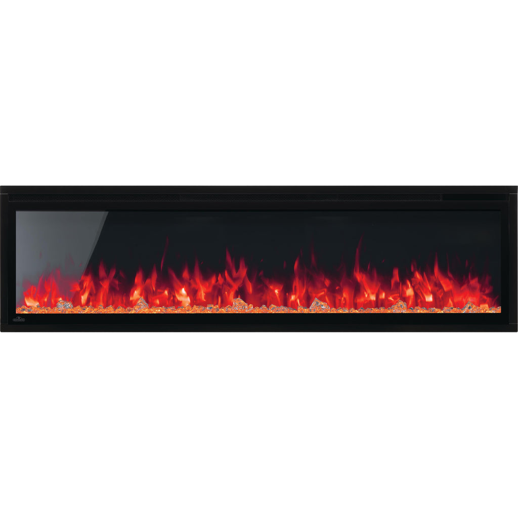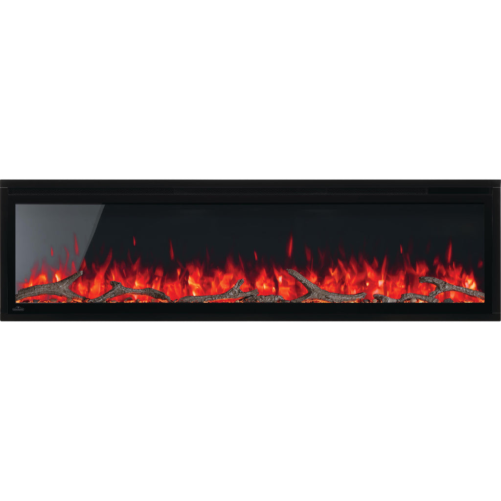 The Napoleon Entice™ 60 Wall Hanging Electric Fireplace is 16.94-inches tall, 59.69-inches wide, 5.44-inches deep (43.03 cm tall, 151.61 cm wide, 13.82 cm deep)