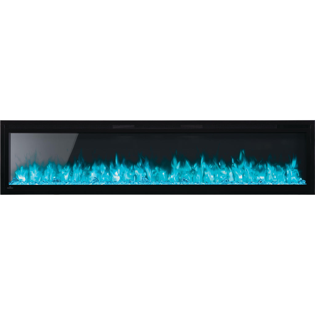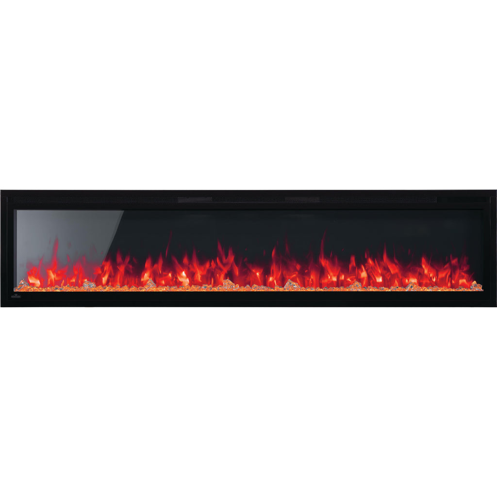 The Napoleon Entice™ 72 Wall Hanging Electric Fireplace is 16.94-inches tall, 71.69-inches wide, and 5.44-inches deep (43.03 cm tall, 182.09 cm wide, 13.82 cm deep)
