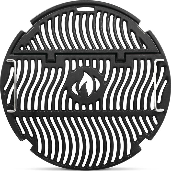 Replace or upgrade your cooking grids with these Porcelain Enameled Cooking Grids for 18-inch diameter charcoal kettle grills. Cast iron holds heat and provides the best searing on a grill. Properly maintained and seasoned cast iron is nonstick and highly durable. These hinged grids allow easy addition of extra charcoal, refilling water pans, and addition of wood chips and chunks for smoking.