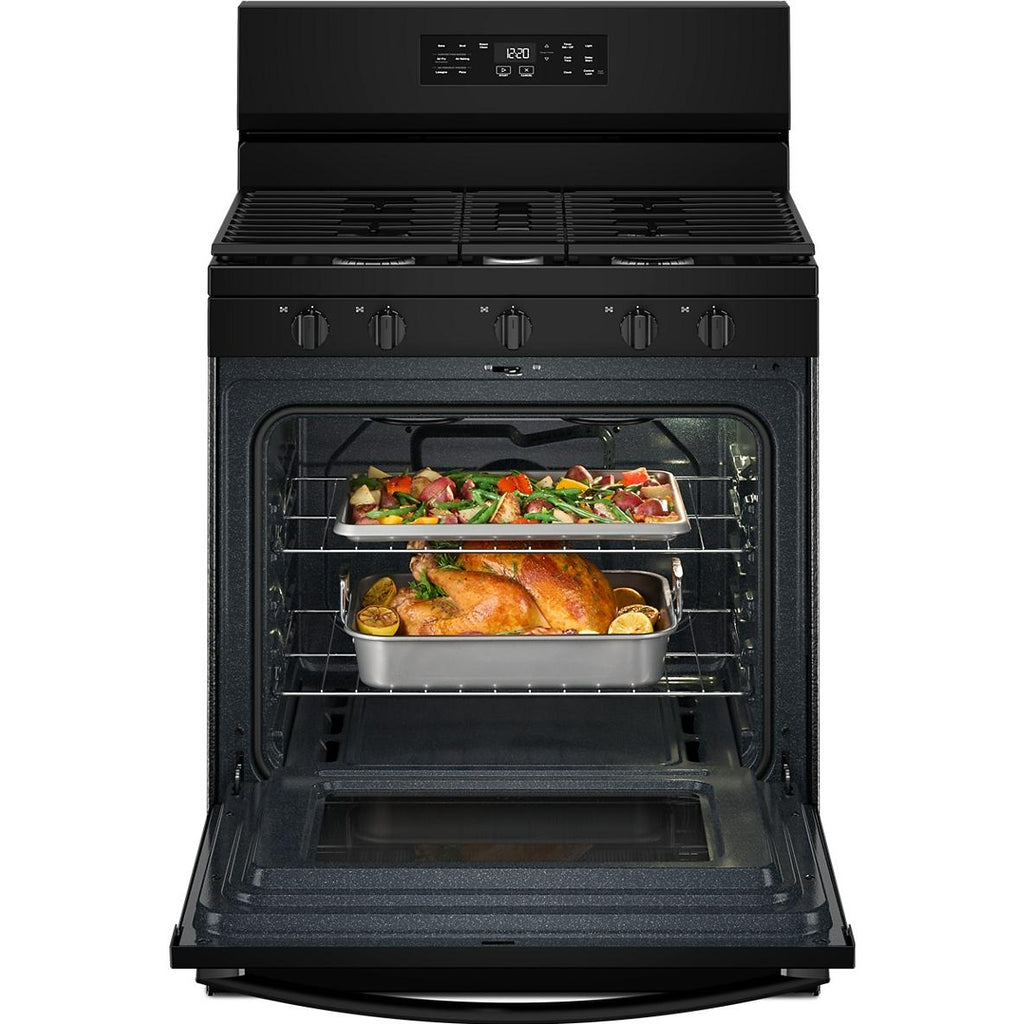 Whirlpool 30-inch Gas Range with Air Cooking Technology and Steam Clean. Experience the difference of Air Cooking Technology with Air Baking with this 30-inch gas range. Get crispy fast with No Preheat Air Fry or make more feel good meals with a variety of cooking modes. Maximize your cooking space with an 8000 BTU Griddle Zone and prevent soils from building up by regularly using Steam Clean.